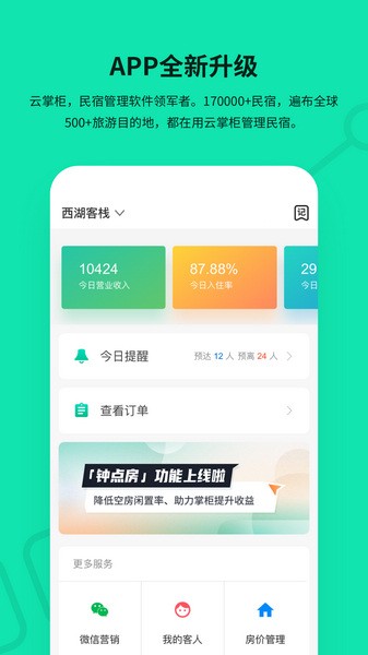 在手机上可以随时随地管理好自己的民宿,可以快速的解决日常工作;