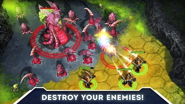 游戏整体来讲还是采用了比较传统的军事养成策略,包括在各种道具的控制上面,玩家并不需要像RPG游戏那么精准而快速的操作,只需要在战斗开始前选择好投放士兵的位置即可。游戏的战斗可谓异常精彩,各种机械士兵之间火炮想加的攻击,让整个战场热血沸腾,同时大家也不能小看士兵的投放点,避重就轻才能让我们战斗的损失最低。