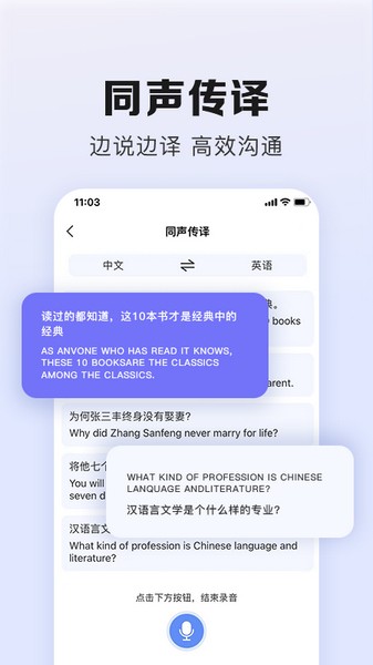 3、多种场景使用,如商务交流、旅游购物、学术交流等,在不同场景下为用户提供精准的翻译服务。