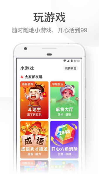 4、休闲游戏,内置超多小游戏,不用下载,随时玩游戏;