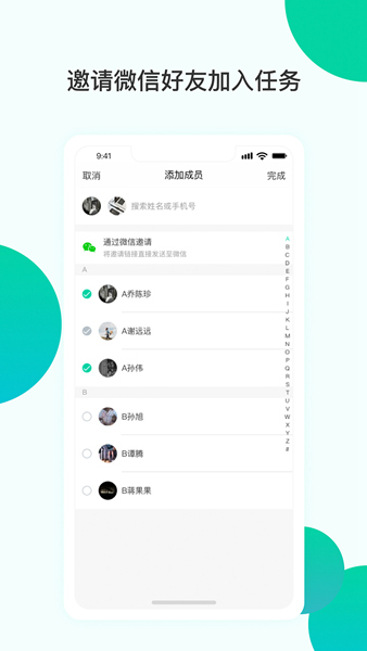 2、通过微信一键邀请参与人共同完成任务,轻松高效;