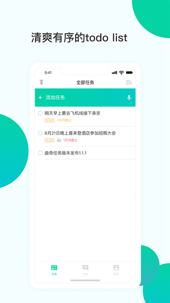 曲奇任务APP是一款非常实用的任务管理工具,界面简洁操作方便。它最大的优点是可以通过微信快速邀请团队成员加入,协同完成任务,特别适合需要多人协作的工作。软件支持设置任务的时间、地点和提醒功能,还能通过颜色标注任务的优先级,帮助用户更高效地安排工作。