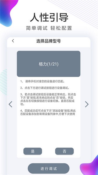 进入APP,选择您要远程控制的电器和品牌,APP会自动引导您完成配对方式。