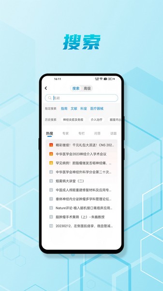 覆盖神经外科、神经介入全行业培训班、峰会等各类会议信息,提供会议预告、报名、查询、直播、报导等功能。借助移动互联网,让医生便捷的了解及参与行业会议和观看视频。