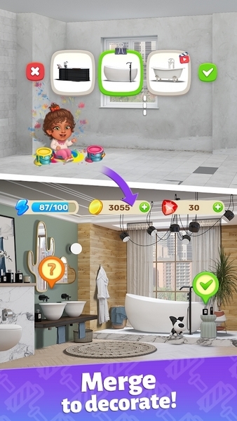 合并房屋破解版是一款模拟装修合并类手游,而该版则是无限货币破解版,可以让玩家在游玩时获取无限货币,轻松购买升级,为你带来更加轻松的游戏体验!同时游戏采用卡通画风绘制,玩法相当丰富,拥有超多关卡可供玩家进行挑战,自由合并组成全新物品,且随着完成关卡,还能获取丰富的奖励,自由改装房屋,享受装扮乐趣!