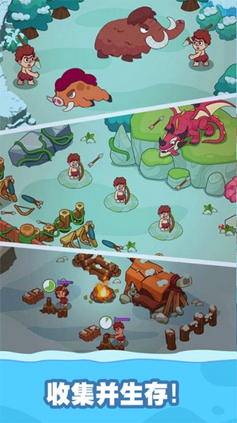 冰河时代生存大亨最新版是一款冰河时代模拟生存游戏。在这款游戏中玩家将作为原始部落的族长带领族人们在寒冷的冰河时代生存下去。玩家在游戏中所有的行为目的都是为了生存,为此需要收集所有可以使用的资源并管理好物资的使用,确保能维持部落正常的生活。此外,玩家还可以进一步扩大村庄的规模来让更多的人口生活,建造各类生活设备来生存物资。
