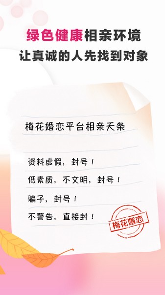 梅花再婚相亲是一款为再婚人士准备的相亲交友软件。这款软件根据离异人士的需求设计功能,收集全国各地的再婚市场信息,为用户匹配推送合适的对象。在平台上所有人都必须经过实名认证后才能加入到相亲群体中,每一个人都能够接受离异情况,助力每一个渴望新感情的再婚人士找到自己的真爱。此外,梅花再婚相亲平台还提供婚恋感情咨询服务。