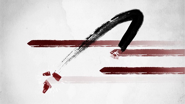 第二关,利剑,手持利剑,削铁如泥,本应削段所有宝剑,却只能破其剑锋才能毁其剑,有人说随便削就没有游戏性了,但这款游戏主打的就不是游戏性,所以我认为,其剑锋即其势,剑毁了,你能换无数把,但势破了,给你再好的剑也无济于事了。削剑,破势,断其习剑之路,锋不可当,却过刚易折,再无余地,即使是用来斩匪首,却也不一定是对的。
