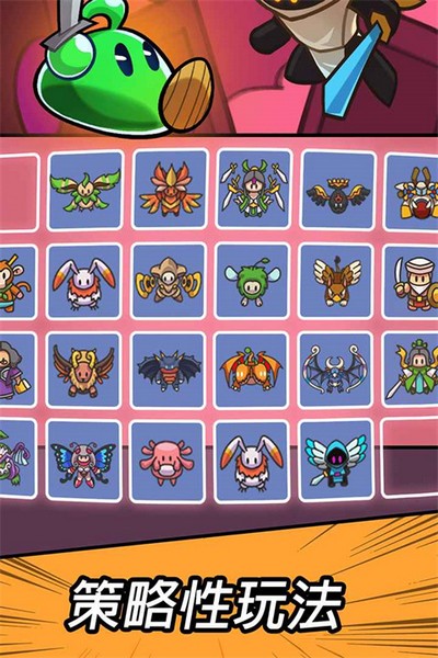勇闯要塞是一款合成休闲题材的手游,玩法丰富,结合了肉鸽、塔防和战斗等多种元素,画面是可爱的卡通风格。游戏中有各种不同技能的史莱姆英雄,玩家需要合理搭配阵容来提升战斗力,击败敌人。