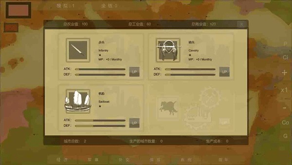 2、你需要雇佣更多的士兵来增强你的力量,这样你就可以抵抗敌人的攻击发展自己的势力。