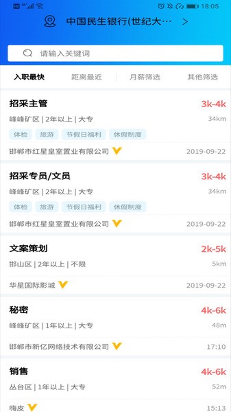 提供海量丰富的工作岗位,求职者可实时根据地理位置就近查找工作