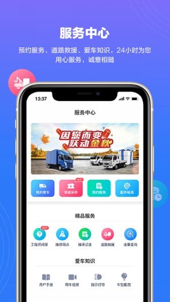 这个APP还有好多贴心的功能,比如积分商城可以兑换各种好礼,会员中心有丰富的活动,服务中心更是24小时在线为你提供帮助。如果你是上汽轻卡车主,这款APP绝对是你开车路上的好帮手,不仅能解决故障问题,还能找到最近的服务网点和货源,简直太方便了!我感觉这个APP特别适合经常开车的朋友,有了它,不仅省心还省钱,真是个宝藏啊!