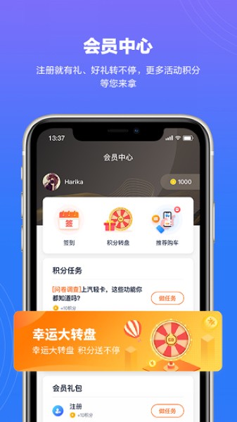 1、用户通过推荐安装app、每日签到、与厂家及卡友在线沟通的形式,实现积分权益累加,获得商城兑换实物、续购转介绍现金奖励等。