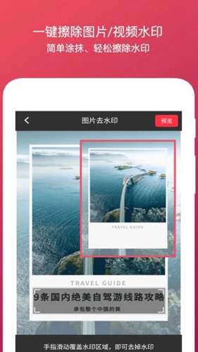 1.主打视频图片水印的清除软件,界面简洁清爽,操作简单便捷;