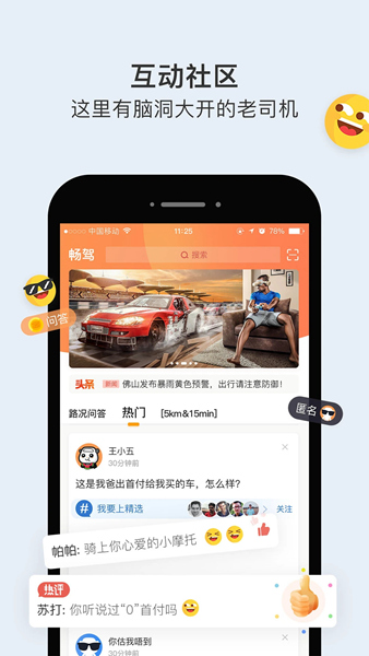 我觉得这款软件的设计挺人性化的,功能全面且操作简单。比如查路况时,它会自动推荐最优路线;违章查询也很方便,节省了很多时间。特别是ETC申领和选车查价这些功能,对新手车主特别友好。而且通过同城交友功能,还能认识更多志同道合的车友,让开车变得更有趣。