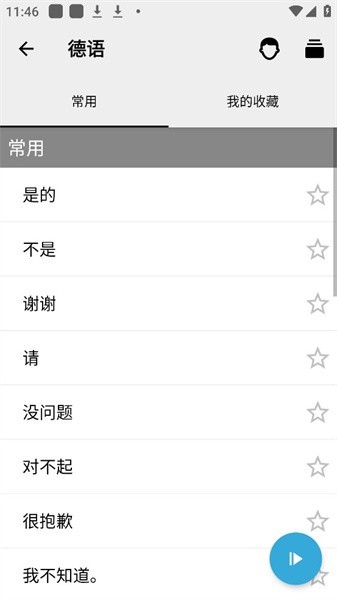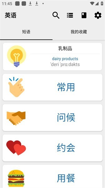 4、短语收藏:用户可以将自己喜欢的短语收藏起来,在收藏中能够查看到。
