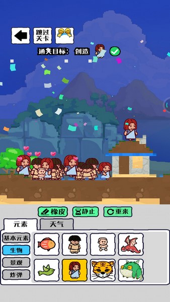 我的文明模拟器破解版无广告版是一款模拟类手游,玩家可以在场景中放置任意的对象,如果是生命体的话还会和场景中的其他对象进行互动,从而触发各种有趣的事件。它的玩法是很简单的,采用了关卡的形式,玩家可以通过调整世界中的对象来使这个世界的文明顺着你想要的方向去发展。该版本的我的文明模拟器中去掉了所有广告,玩起来更加快速顺畅。