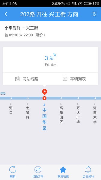 线路信息旁边会有预报信息,比如下辆702路距离当前位置还有2站。这一功能帮助乘客选择更合适的乘车线路,随机选择距离更近的公交线路,避免长时间候车。同时,车辆信息有两种表现方式,一种是线形图,可查询到车站是否有公交车到站,也可以切换到地图模式,可以看到公交车在线路上运行的情况。乘客可根据这些信息来判断线路情况。