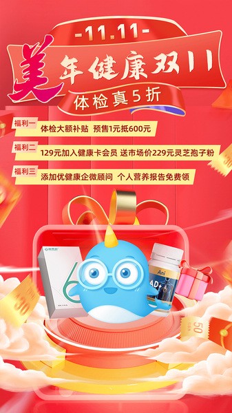 家庭健康档案一个账号全管理,关注全家健康状况;购买体检送健康,购买老人专属体检套餐,孝敬父母;