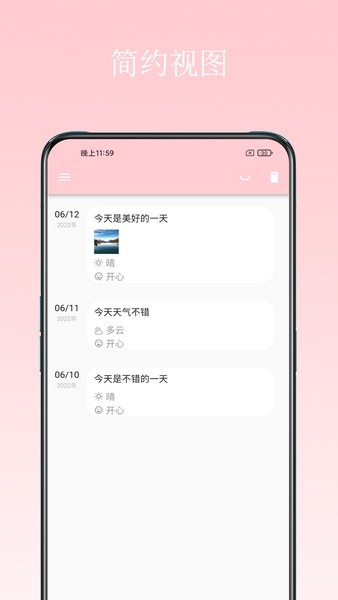 简约视图,记录日记都是非常的简约,直接就可以去进行查看。
