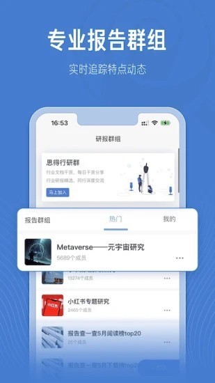 软件功能也挺全面的。依托强大的数据团队,系统化呈现了数千万张行业图表,还有结合移动端和PC端的数据采集功能,让工作流程变得高效灵活。特别是它的垂直行业群和上百个热门领域的群组,每天实时更新优质研报,这种社群化的信息分享方式真的很方便。