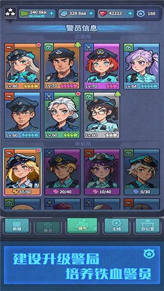 每个警员都可以进行属性的提升,不断的提升个人属性,就能够提升等级,加强个人的能力。
