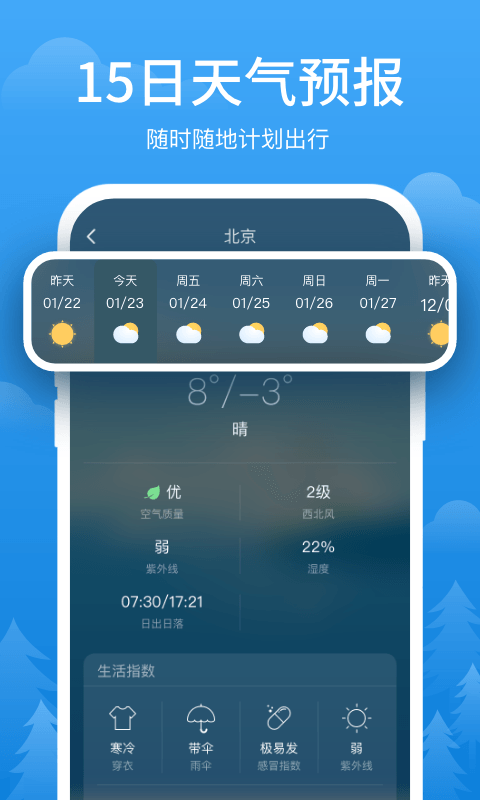 超长15天天气预测,预知晴雨为您的日常生活早做打算。