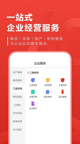 京东云企业管家是一款专为广大中小企业打造的云服务平台,在这里,不仅可以为你提供安全、方便、快捷的一站式企业服务,帮助你更好的管理企业的发展,让企业走得更远,而且这款软件界面简洁美观清晰明了,操作使用简单方便快捷易上手,让你可以轻松把控,随时随地即可快速帮助你最大程度的减少成本,让企业经营更加地专业化,当然了,这里也包含着许多强大实用的功能等你来挖掘,心动不如行动,欢迎各位感兴趣的小伙伴前来下载体验!