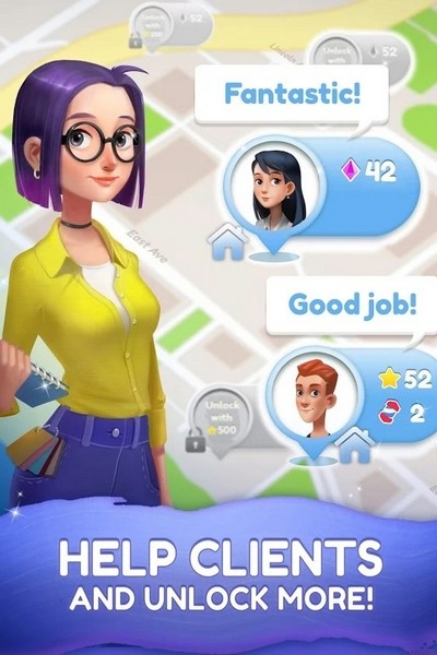 解决匹配3个拼图级别并解锁数百个新装饰项目,以帮助您的客户创建他们的梦想家园!最终的设计完全取决于您!