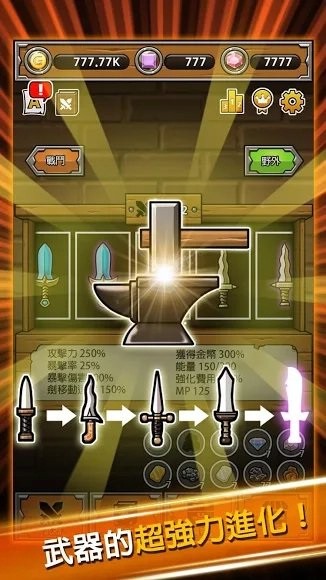 休闲放置玩法:游戏玩法简单,玩家只需放置打怪获取资源,升级武器,就能不断变强。