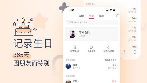 生日管家智能发现通讯录里好友生日,再也不用刻意询问了,添加生日像用微信一样简单自然;