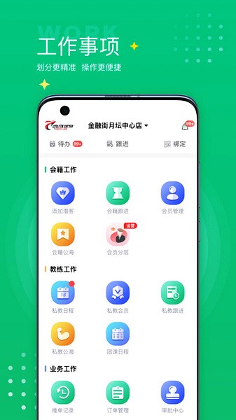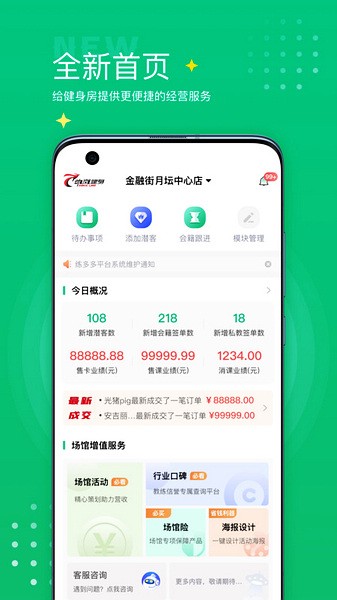 app的功能也很实用,比如数据报表随时看业绩和课程情况;课程预约、教练管理、排课安排都方便操作。最近更新还优化了体验,用起来更流畅了。我觉得这对健身房来说是个不错的解决方案,既能提升效率,又能增加收入。
