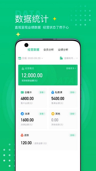 数据报表:随时审核销售业绩报表、课程报表;