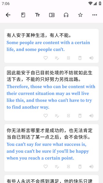 分句翻译是一款功能非常全面的双语阅读翻译软件,通过该软件用户可以轻松的阅读各种英语文本,软件支持所有的文本格式的导入,然后就可以帮助大家轻松便捷的进行文本的翻译了,此外软件还支持多种不同的语音,使用起来也是非常简单的,很好的满足了用户翻译上的需求,让大家可以轻松了解到自己不懂的语言。有需要的小伙伴快来下载使用吧!