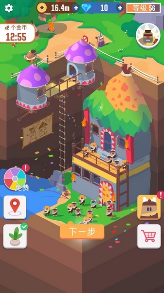 2、轻松的指尖点击操作,想办法提升工人们的挖矿效率从而让自己获得更多财富,还可以自由建造各种建筑