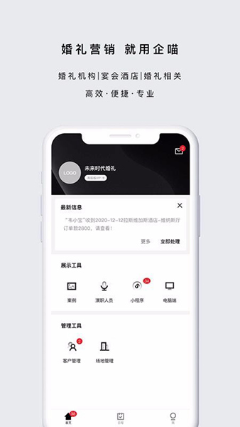 1、婚企智慧管理系统,软件为婚礼公司、主题宴会酒店等使用,提供从获客、营销;