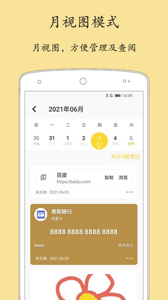 2.记账、日记、记录生活灵感、记录容易忘记的琐事,解压生活,消除焦虑和烦恼;