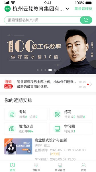 这款软件的一大特色是“建立企业学习库”,支持内部和外部课程的发布,课程形式多样,包括视频、语音和PPT等。另外,跟进员工学习情况也很到位,比如课程安排通知、课中考勤、学习记录以及课后练习,都能及时跟踪。学习反馈机制还能优化组织的学习结构和人才发展。