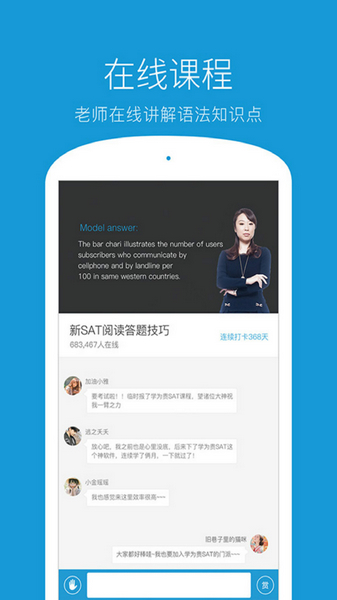 学为贵SAT是一款专业的在线学习应用,专为备考SAT考试的学生设计。它提供了丰富的阅读专项练习、语法和写作课程,帮助用户系统提升英语能力。软件的一大特点是按难度分级的阅读材料,用户可以根据自己的水平选择初级、中级或高级文章进行练习。每天都有新的背景素材推荐,模拟真实考场环境,帮助考生熟悉题型和节奏。