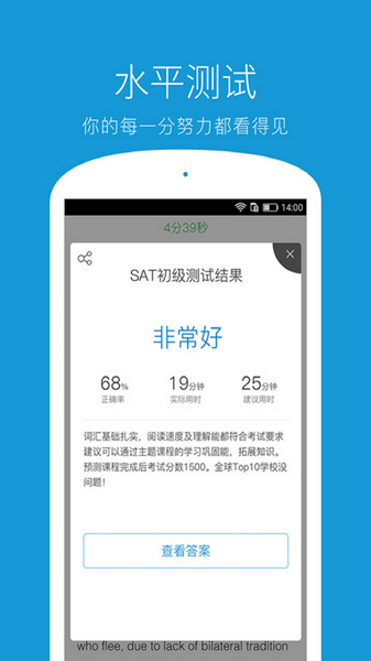 SAT高分必备应用,线上即可通过单词测试与文章测试;