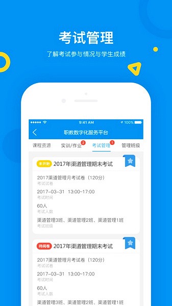 更棒的是,app还能把教学工作全都整合到手机里,随时查看班级学生成绩,特别是那些成绩靠前和靠后的学生情况一目了然。而且考试管理也很方便,一键发布试卷,成绩自动统计保存,老师的工作量应该会减少不少。