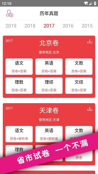 收录五年200多张试卷,更有北京、天津、浙江、上海高考试题等地的地方试卷。是您的移动题库,是您高考的助手,更是您的刷题神器。