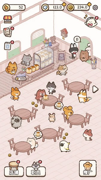 员工招募与培养:玩家可以招募各种可爱的猫咪员工,提升店铺的经营效率。不同的员工拥有不同的技能,玩家需要根据店铺的需求进行合理搭配。
