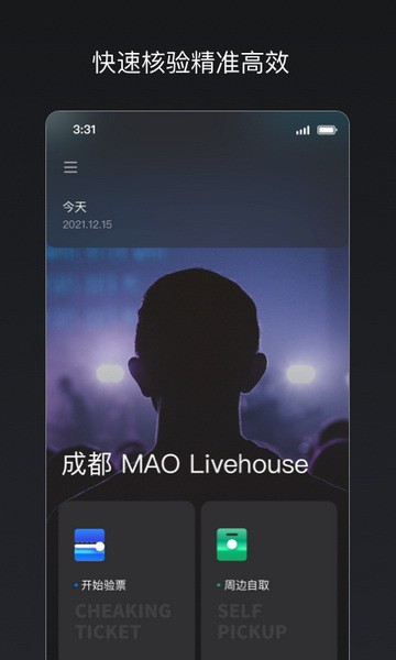 很方便地在演出开始前通过扫描二维码或输入手机号的方式进行验票。