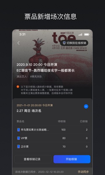5、演出结束后,请至少手动同步一次您的验票数据。