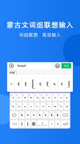 2、蒙古文词组智能的联想,高效的输入提供了方便;