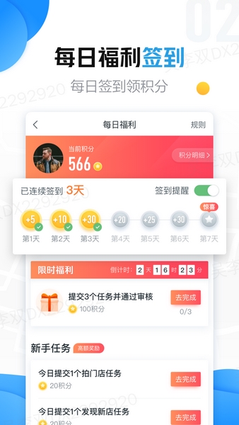软件里还有一些不错的功能,比如邀请好友参与可以拿到额外奖励,这个我觉得挺有意思的,可以拉上三五好友一起赚钱。还有每日签到领积分、抽奖这些小惊喜,让整个过程更有趣了。最让我喜欢的是任务搜索和实时定位功能,这样找起店来特别方便,节省了很多时间。