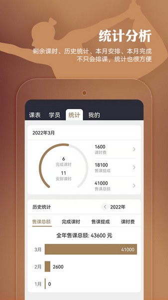 每位学员剩余课时、本月安排、本月完成、历史统计,还需要什么你尽管告诉我