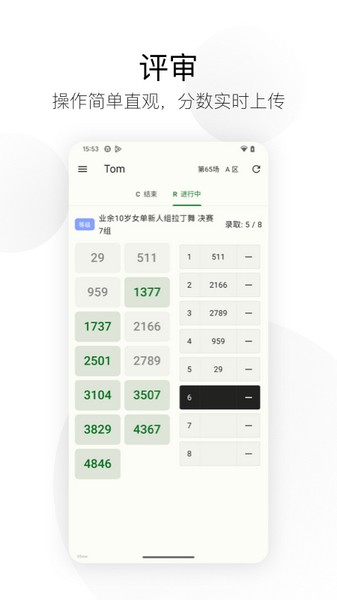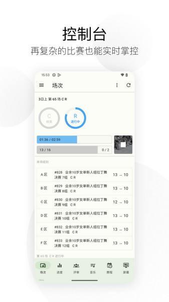 这个应用有很多特色功能,比如支持实时展示比赛过程,吸引观众注意力;还可以根据需求个性化设置主题颜色和字体大小,界面简洁友好,操作起来完全不费劲。特别棒的是它能根据选手水平分组展示,避免不同层次的选手竞争压力过大,这样更公平合理。