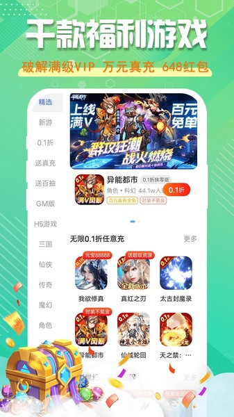 免费领取海量游戏福利,超多BT游戏,超低折扣游戏,H5游戏,公益服手游,百亿补贴福利等你来领。